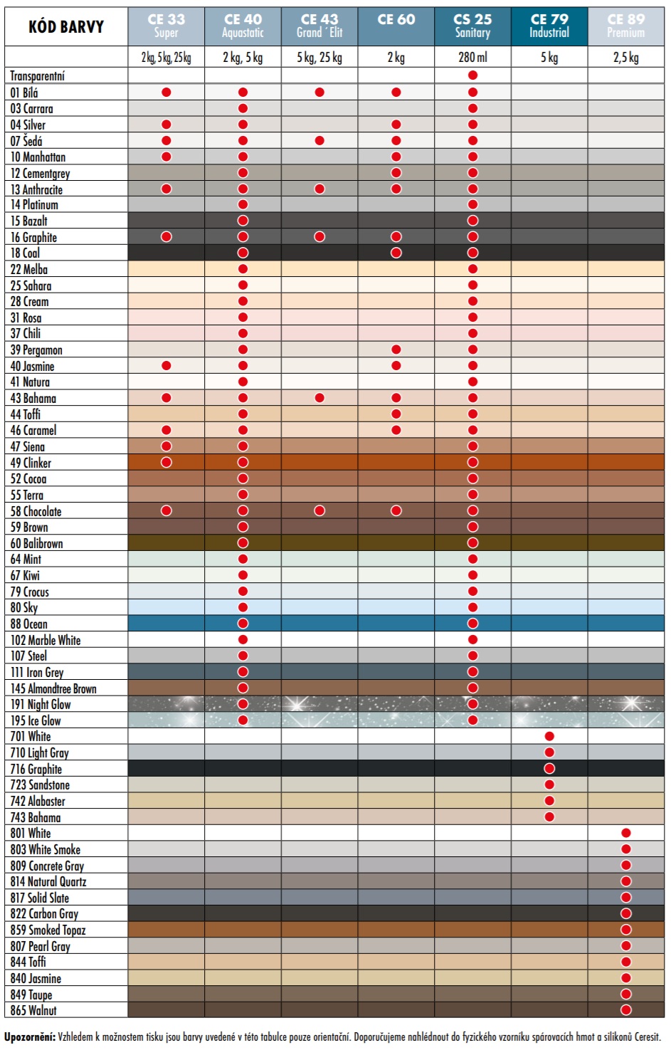 Hmota Ceresit CE 89 je určená na chemicky a trvale odolné lepenie a škárovanie keramických obkladov, dlažby a mozaiky so škárou 1–15mm, ako sú: obytné, verejné a priemyselné priestory, obklady v kúpeľniach, sprchách, bazénoch, nádržiach s termálnou alebo brakickou ( poloslanou) vodou, saunách a parných kúpeľoch, ďalej pre podlahové vykurovanie, kuchynské dosky, terasy a balkóny. Produkt je možné použiť na škárovanie keramických obkladov v prostrediach vystavených priamemu kontaktu s potravinami, ako sú: pracovné stoly na mäso, mliečne výrobky alebo múky, kuchynské stoly v reštauráciách, pekárňach a cukrárňach. Hmota je vhodná na lepenie a škárovanie keramických krytín v oblastiach vystavených agresívnym látkam (pozri tabuľku chemickej odolnosti), ako sú mliekarne, bitúnky, reštaurácie, potravinárske výrobne všeobecne. Vhodné na lepenie a škárovanie mozaiky v bazénoch na vodotesných membránach ako CL 50, CL 69.
