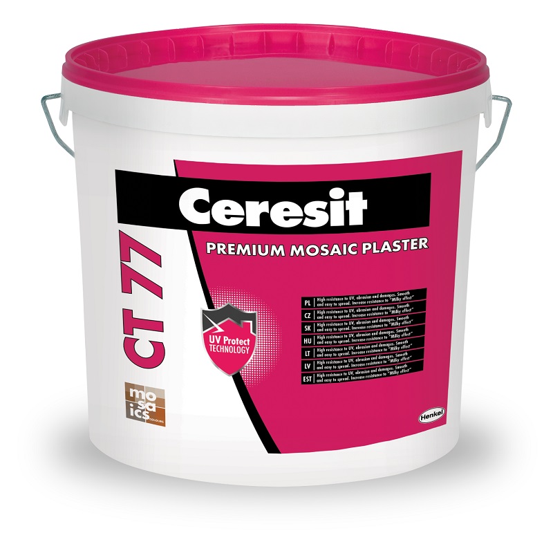 Mozaiková omietka Ceresit CT 77 je špičkové dekoratívne riešenie pre steny v interiéri aj exteriéri, navrhnuté pre náročné podmienky a vysoké estetické nároky. Vďaka vysokej odolnosti voči UV žiareniu, oderu a mechanickému poškodeniu je ideálnou voľbou pre plochy so zvýšeným zaťažením – či už sa jedná o sokle, vstupné portály, chodby alebo balustrády.
