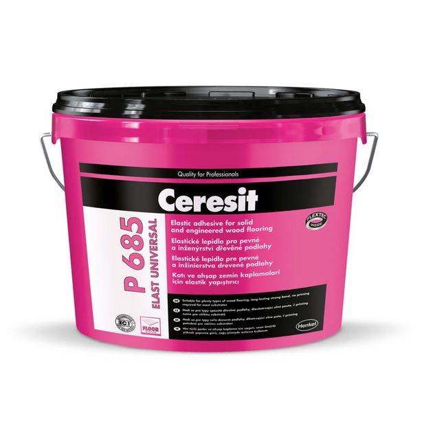 Pre väčšinu drevených podláh ponúka jednozložkové špeciálne lepidlo Ceresit P 685 širokú škálu vlastností, ktoré zahŕňajú dlhodobú vynikajúcu pevnosť spoja a technológiu Flextec®. Toto vysoko elastické lepidlo je navrhnuté tak, aby poskytovalo výnimočné vlastnosti pri lepení drevených podláh. Pre väčšinu podkladov nie je nutné použitie penetrácie, čo uľahčuje proces aplikácie. Vďaka technológii Flextec® je lepidlo veľmi dobre spracovateľné, neobsahuje rozpúšťadlá ani vodu a škvrny sa lepšie odstraňujú. Pri inštalácii drevenej podlahovej krytiny sa toto vysoko kvalitné univerzálne lepidlo nanáša priamo na pripravený povrch poteru – nie je potrebný penetračný náter. Vďaka svojej jednoduchej roztierateľnosti je ideálnou voľbou pre veľké plochy povrchu, čo výrazne uľahčuje prácu pri inštalácii. Jeho pohodlná a dlhá otvorená doba približne 30 minút dáva dostatok času na dokončenie práce bez stresu. Ceresit P 685 je vhodné na lepenie rôznych typov drevených podláh, vrátane parketových vlysov, drevené mozaiky, kantoviek a lamparketov, viacvrstvových drevených parketov, dosiek z masívneho dreva od hrúbky 16 mm a do šírky 160 mm. Možno ho použiť na nasledujúcich savých aj nesavých podkladoch, vrátane minerálnych poterov, suchých doskových systémov, drevotrieskových a OSB dosiek, samonivelačných podlahových vyrovnávacích hmôt Ceresit vhodných pod drevené podlahy, prírodný kameň, keramickú dlažbu a teraco. Ďalším prínosom tohto elastického lepidla na drevené podlahy je, že Ceresit P 685 (rovnako ako u všetkých ostatných lepidiel na drevené podlahy s technológiou Flextec®) už nezanecháva na rukách žiadne čierne zvyšky a zašpinenie. Škvrny lepidla na hotovom povrchu je možné ľahko odstraňovať, čo uľahčuje upratovanie. Navyše je tento produkt hospodárny a trvalo udržateľný, pretože po otvorení nádoby je možné v práci pokračovať po niekoľko dní bez akýchkoľvek problémov. Tlmenie hluku v miestnosti predstavuje ďalšiu výhodu pre zákazníka, ktorá zvyšuje komfort bývania. Lepidlo dokáže významne tlmiť úroveň hluku v miestnosti a kročajový hluk, čo prispieva k príjemnému prostrediu. Elastické zloženie lepidla navyše znižuje pnutie v podklade, čím poskytuje dlhodobú stabilitu a ochranu dreva.