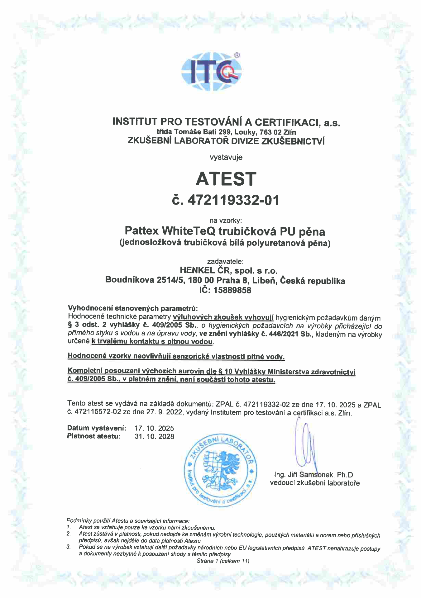 ATEST PRE STYK S PITNOU VODOU – VHODNÁ AJ AKO KANALIZAČNÁ A ŠTUDNIČNÁ PENA