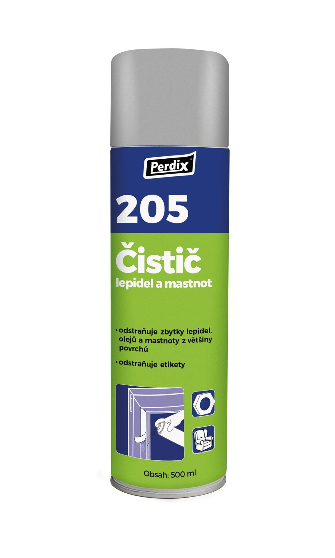Čistič lepidiel a mastnoty Perdix 205 je zmes organických rozpúšťadiel, ktorá rýchlo odstraňuje prebytočné lepidlá, usadeniny oleja a mastnotu z väčšiny povrchov. Je vhodný na kov, lak, sklo, gumu, väčšinu plastov, čalúnnické látky, záclony, koberce, žalúzie a iné textílie. Rozpúšťa olej a mastnotu, ktoré možno po aplikácii ľahko zotrieť. Zvyšky sa odparujú bez zanechania nečistôt.